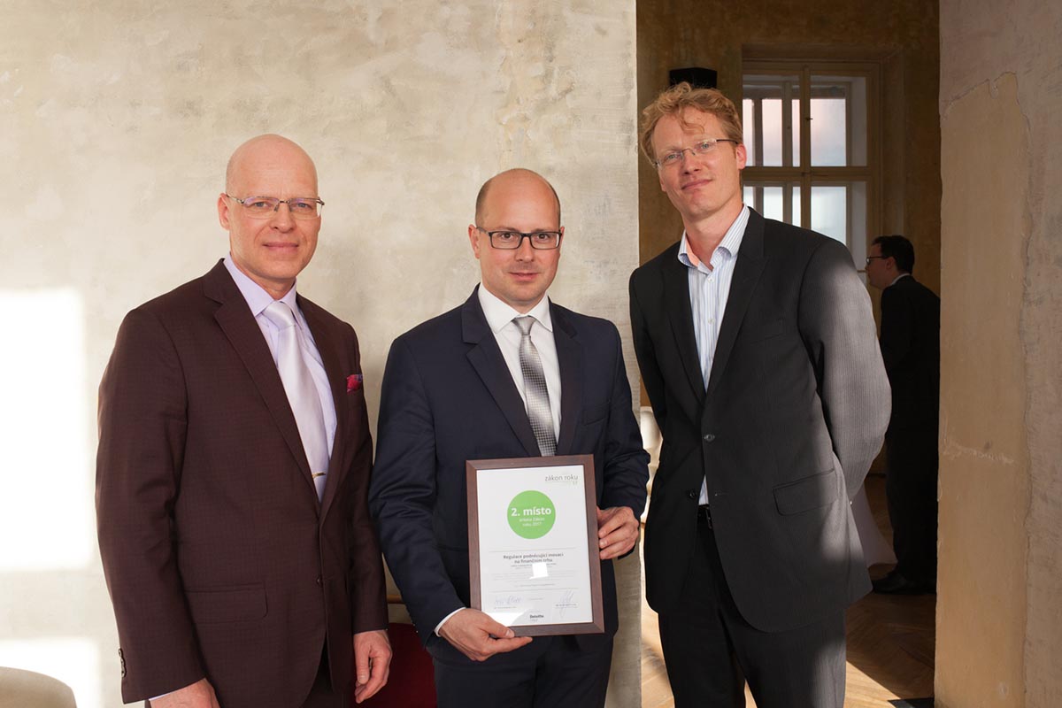 V anketě Zákon roku, kterou již po deváté pořádala společnost Deloitte Legal, měli rozhodující hlasy zástupci podnikatelské sféry a odborné veřejnosti. Na základě jejich hlasování se zákon o platebním styku implementující evropskou směrnici o platebních službách (PSD2) stal druhým nejlepším legislativním počinem roku 2017. Pro tento zákon, který získal čtvrtinu z celkového počtu hlasů, hlasovali především zástupci měst a obcí, veřejné sféry, finančního sektoru, obchodu a cestovního ruchu. Ocenění za Ministerstvo financí převzal během slavnostního vyhlášení ředitel odboru Finančních trhů Jiří Beran.
