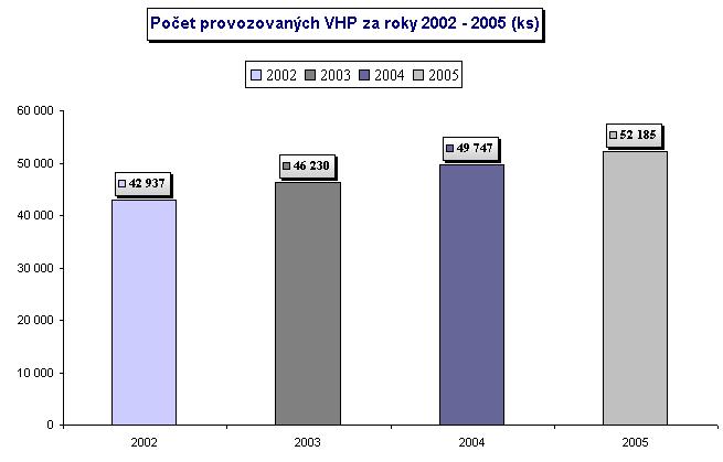 | Počet provozovaných VHP (ks) | 42 937 | 46 230 | 49 747 | 52 185 | 1 550 | 2 093 | 2 504 | 2 543 |