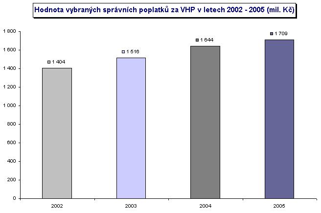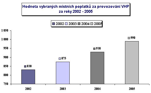 - Počet provozovaných VHP, vybrané hodnoty správních a místních poplatků za roky 2002-2005