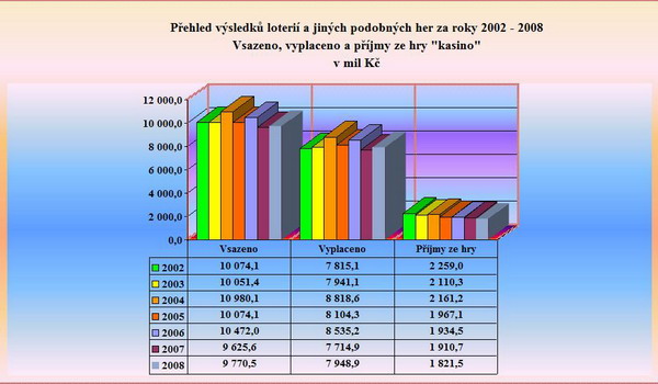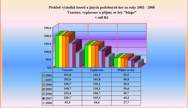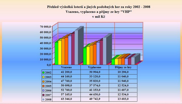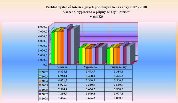 | Přehled výsledků z provozování loterií a jiných podobných her za roky 2002 - 2008 |