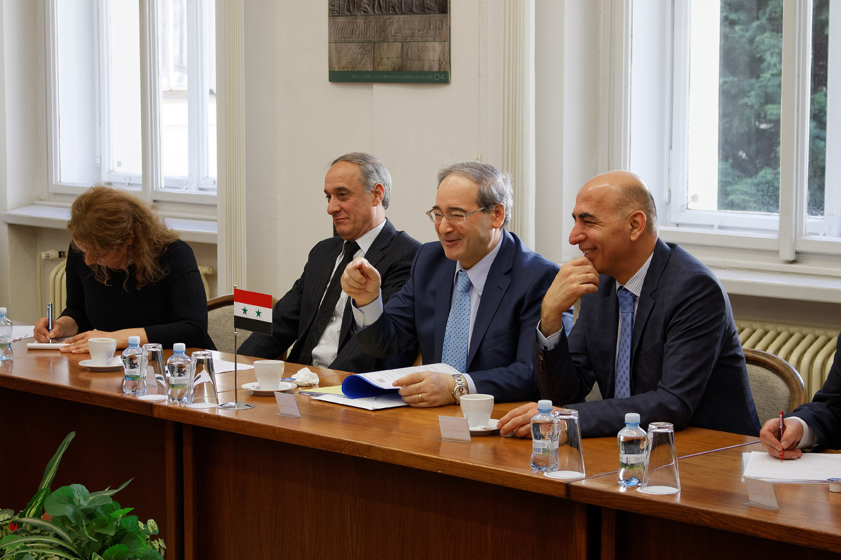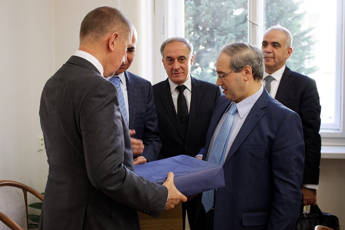 Ministr financí Andrej Babiš se sešel k bilaterálnímu jednání s delegací ministerstva zahraničních věcí Syrské arabské republiky vedené 1. náměstkem ministra Fajsalem Mikdádem a náměstkem pro evropské záležitosti Aymanem Súsánem. Vedle ministra financí se schůzky zúčastnila jeho náměstkyně pro řízení sekce mezinárodních vztahů Lenka Jurošková a náměstek ministra zahraničních věcí pro řízení sekce mimoevropských zemí, ekonomické a rozvojové spolupráce Martin Tlapa.