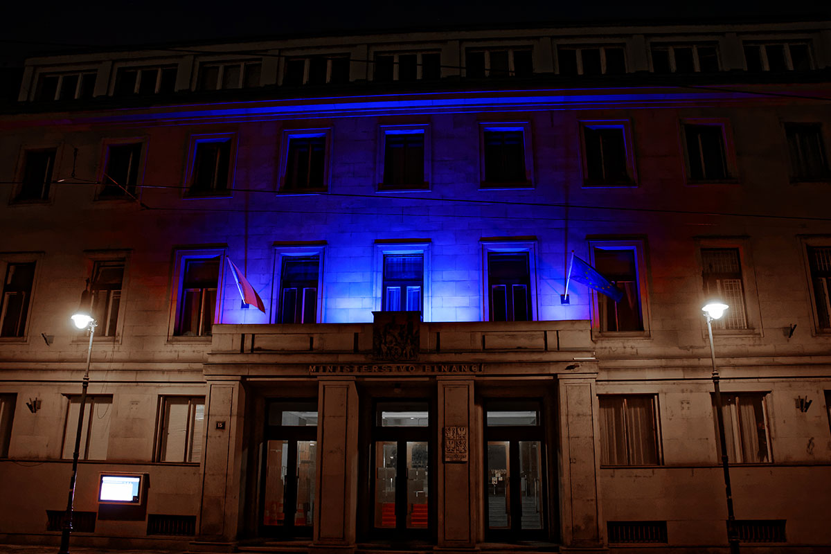 V noci z 2. na 3. dubna rozzářila budovu Ministerstva financí v Letenské ulici modrá barva. Rezort se tak poprvé připojil k celorepublikovému projektu „Česko svítí modře“, který už od roku 2014 pořádá platforma Naděje pro Autismus.