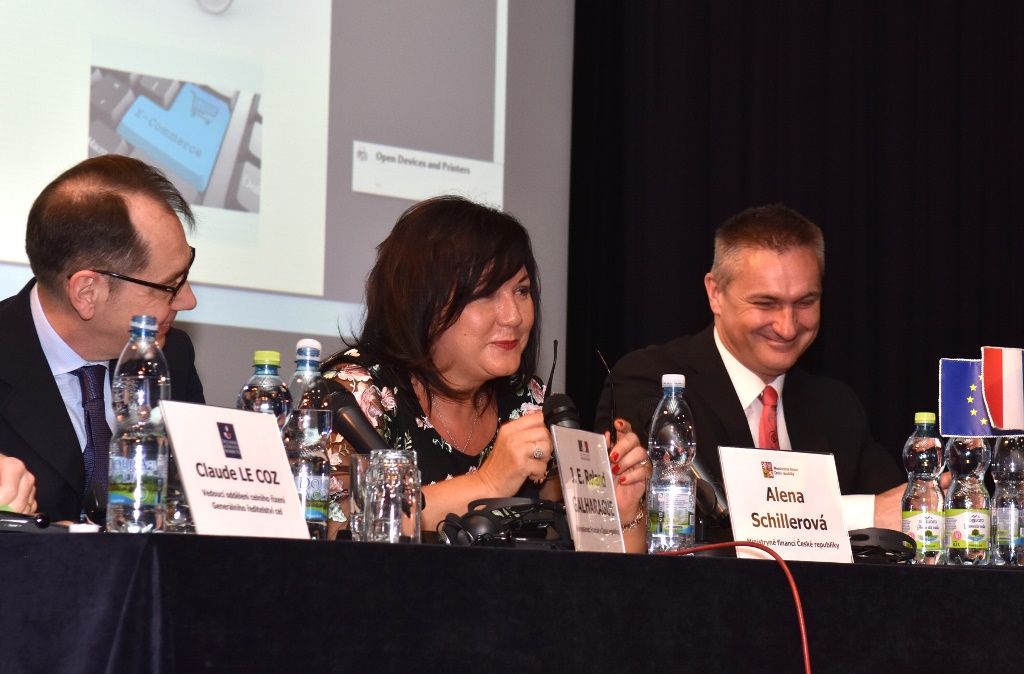 Ministryně financí Alena Schillerová se dnes zúčastnila česko-francouzského kolokvia o obchodu se zbožím a službami prostřednictvím internetu. Diskuse se konala na Francouzském institutu v Praze za účasti velvyslance Francouzské republiky pana J. E. Rolanda Galharague.