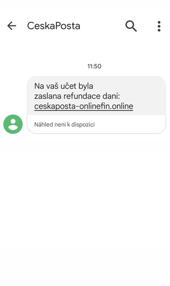 V současné době jsou občanům zasílány podvodné SMS, které předstírají, že jsou odeslány prostřednictvím České pošty. Zprávy informují o vrácení daňových přeplatků Ministerstvem financí.