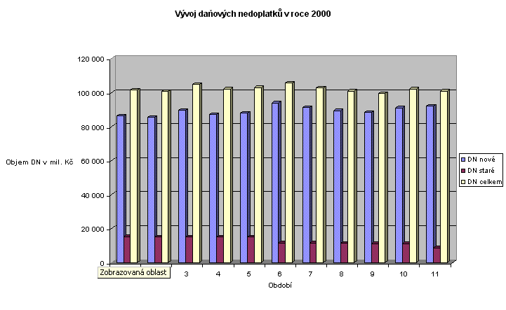 Pokračoval trend postupného snižování tempa meziročního růstu daňových nedoplatků (index růstu 1999/1998 = 1,20; index růstu VI 2000/VI 1999 = 1,12; index XI 2000/XI 1999 = 1,06). V porovnání se stejným obdobím minulého roku sice vzrostl objem kumulované hodnoty splatných daňových nedoplatků o 6,1 mld. Kč, avšak daňové nedoplatky meziročně vzrostly o pouhých 6,5 %.