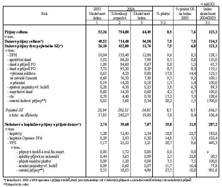 Pokladní plnění státního rozpočtu ČR ke konci ledna 2004