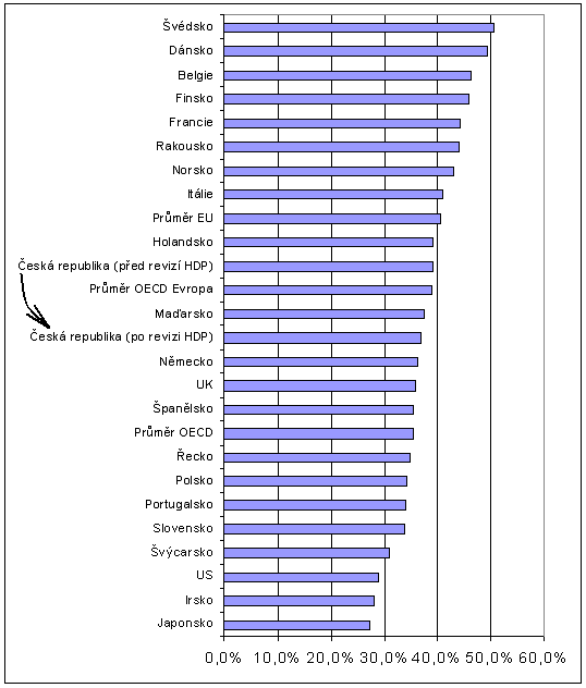 Graf: Česká republika v mezinárodním srovnání podle daňové kvóty