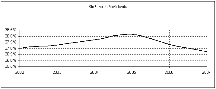 Níže uvedený graf ilustruje skutečnost, že po přechodném období zvýšení daňového zatížení, které bylo vyvoláno především nezbytnými změnami v oblasti nepřímých daní (DPH a spotřební daně), se složená daňová kvóta vrátí v roce 2006 na úroveň jen o 0,3 % vyšší než v roce 2002 a v roce 2007 pak dále klesne pod úroveň roku 2002. Přispějí k tomu především změny na straně přímých daní. Pokles daně z příjmů podniků až na 24 % v roce 2006, zkrácení odpisových dob, společné zdanění manželů a daňové bonusy na děti přispějí k nižšímu zdanění ekonomické aktivity. Tato opatření se v plné míře projeví v roce 2006. Po tomto roce by složená daňová kvóta měla dále klesat.