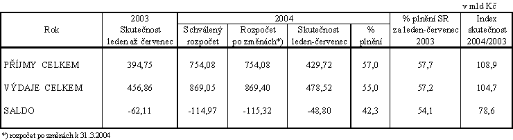 Pokladní plnění státního rozpočtu ČR za leden až červenec 2004