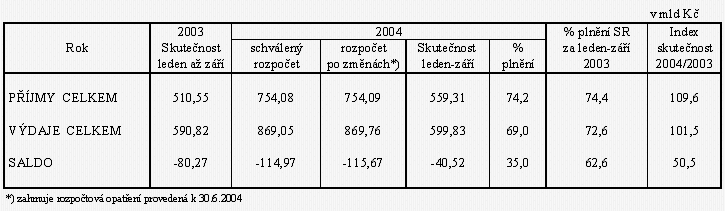 Pokladní plnění státního rozpočtu ČR za leden až září 2004