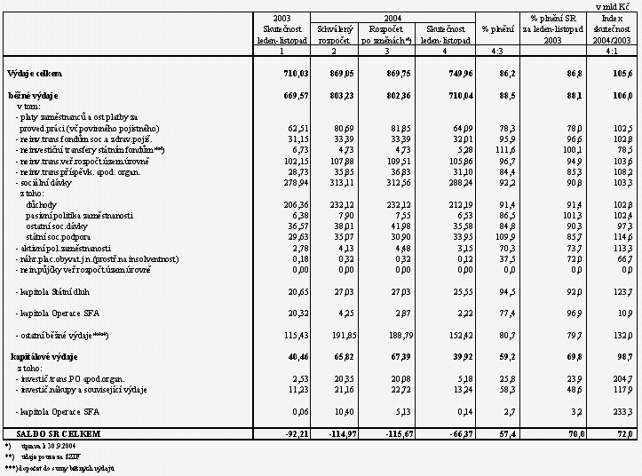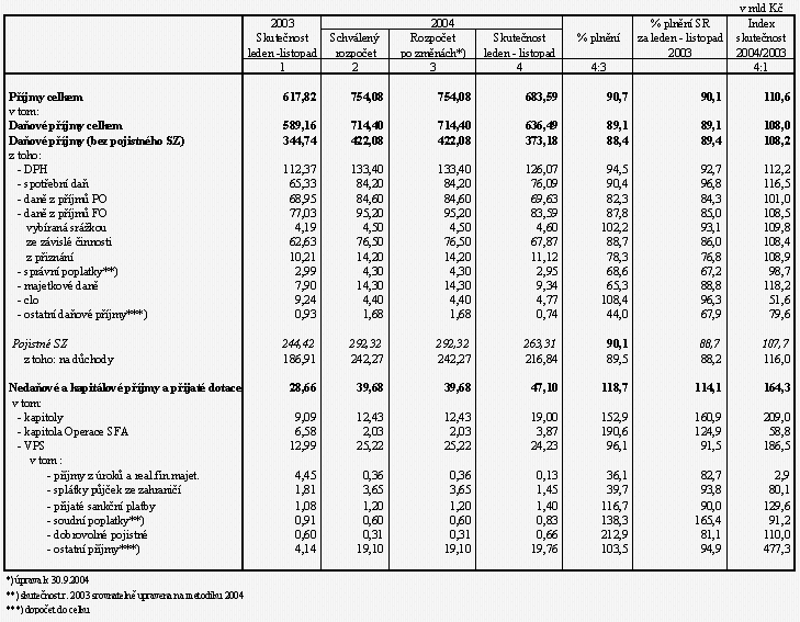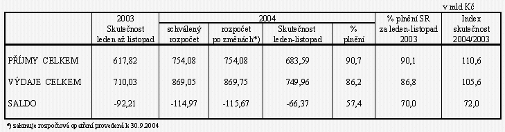 Pokladní plnění státního rozpočtu ČR za leden až listopad 2004