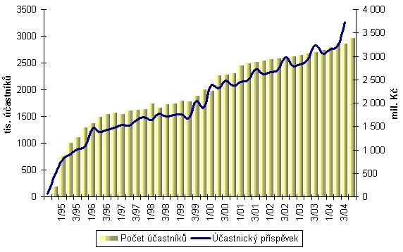 Celkem 2 963 730 účastníků penzijního připojištění vložilo během posledního čtvrtletí roku 2004 do penzijních fondů více než 3,7 mld. Kč a státní příspěvek přesáhl 850 mil. Kč.