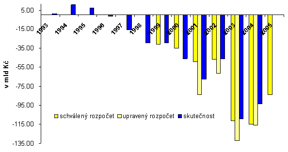 Vývoj hospodaření státního rozpočtu České republiku od roku 1993 zachycuje následující obrázek.