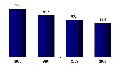 Zdroj: 2003,2004 – skutečnost, 2005 – schválený SR, 2006 – návrh SR