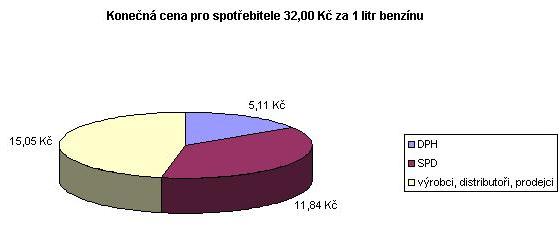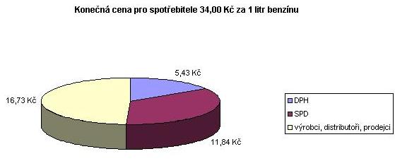 Dopady růstu cen a vývoje daňových příjmů je možno ilustrovat na struktuře konečné ceny benzinu. Z následující tabulky je zřejmé, že podíl daní na konečné ceně klesá a za předpokladu 35 Kč za litr činí méně než polovinu. Zvýšení konečné ceny ze 30 Kč na 35 Kč znamená růst daňových příjmů o 0,80 Kč na litr.