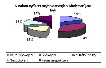 V případě dotazu ohledně lhůty, která je nutná pro vyřízení daňových záležitostí pozorujeme, že většina respondentů je spokojena či velmi spokojena. Nespokojeno či velmi nespokojeno bylo 29 % čtenářů.