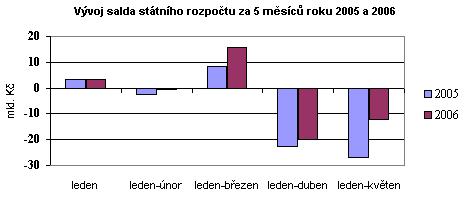 Celkový schodek hospodaření státního rozpočtu ke konci května 2006 činil 12,2 mld. Kč. Proti stavu na konci dubna (19,9 mld. Kč) se schodek hospodaření snížil o 7,7 mld. Kč. I přes vykázané schodkové hospodaření státního rozpočtu je dosažený výsledek relativně pozitivní, neboť je o 14,8 mld. Kč lepší než v květnu 2005 (schodek 27,03 mld. Kč). Proti rozpočtovanému schodku, odpovídajícímu pěti měsícům (31,0 mld. Kč) je výsledek lepší o 18,8 mld. Kč.