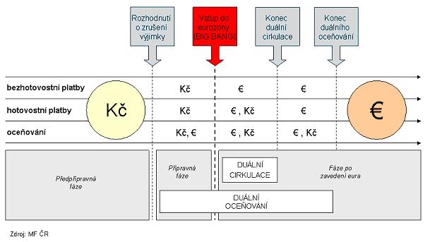 „Koruny bude po omezenou dobu možné použít i po zavedení eura, ale pouze v rámci stanového období tzv. duální cirkulace, po které bude stále možno platit českou korunou. Obchodníci již ale budou muset vracet pouze eura a česká koruna tak bude postupně stahována z oběhu,“ vysvětluje Tomáš Prouza. Období duální cirkulace mají zájemci o přijetí eura stanoveno obvykle v rozmezí dvou týdnů až jednoho měsíce, podobně dlouhé bude toto období také v České republice. Ovšem i poté bude možné vyměnit české koruny za eura v komerčních bankách či centrální bance.