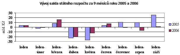 Celkový přebytek hospodaření státního rozpočtu ke konci září 2006 činil 1,5 mld. Kč. Dosažený výsledek je o 24,3 mld. Kč horší než byl za devět měsíců v roce 2005 (kladné saldo 25,8 mld. Kč). Proti rozpočtovanému schodku, odpovídajícímu poměrné roční části (- 55,8 mld. Kč) je výsledek lepší o 57,3 mld. Kč.