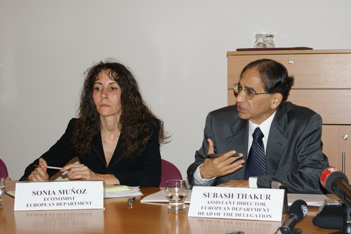 Subash Thakur – vedoucí delegace MMF a Sonia Muňoz – ekonomka Evropského oddělení MMF