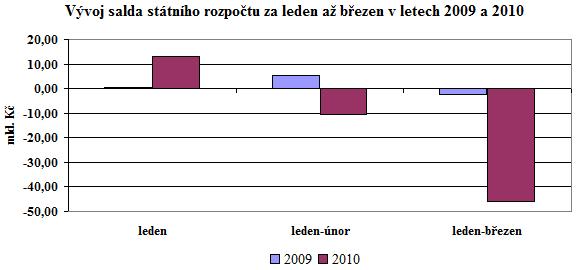 Hospodaření rozpočtu v samotném březnu skončilo ve schodku 35,3 mld. Kč (v březnu 2009 to bylo 7,7 mld. Kč), když příjmy činily 87,2 mld. Kč (v březnu 2009 to bylo 87,8 mld. Kč) a výdaje byly čerpány ve výši 122,5 mld. Kč (v březnu 2009 to bylo 95,6 mld. Kč).