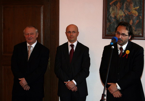 Zleva: ministr financí Eduard Janota, náměstek ministra financí (sekce Daně a cla) Peter Chrenko, vrchní ředitel skupiny Ústřední finanční a daňové ředitelství Jan Knížek