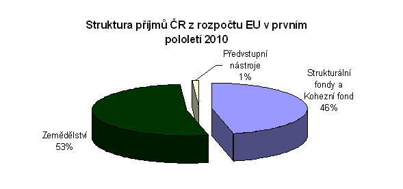 Za pozitivním saldem ČR vůči evropskému rozpočtu stály především příjmy ze strukturálních fondů a Fondu soudržnosti a prostředky ze Společné zemědělské politiky EU. Na politiku soudržnosti ČR celkově za první pololetí letošního roku obdržela 19,2 mld. Kč a příjmy ze Společné zemědělské politiky činily 21,7 mld. Kč, přičemž klíčovou položku tvořily přímé platby (14 mld. Kč). Podrobnější rozpis příjmů a výdajů za první pololetí roku 2010 shrnuje tabulka č. 1.