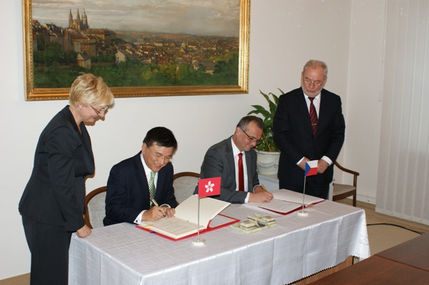 Ministr financí Miroslav Kalousek dnes podepsal se svým hongkongským protějškem K. C. Chanem Smlouvu mezi vládou České republiky a vládou Hongkongu - zvláštní administrativní oblasti Čínské lidové republiky o zamezení dvojímu zdanění a zabránění daňovému úniku v oboru daní z příjmu.