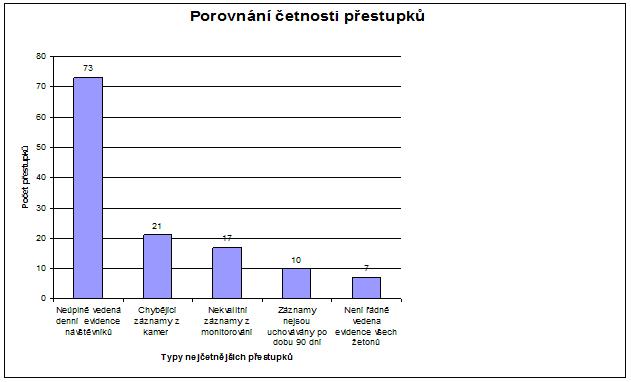 Mezi nejčetnější přestupky patřila neúplná denní evidence návštěvníků, chybějící či nekvalitní záznamy z kamer a chybná evidence žetonů.