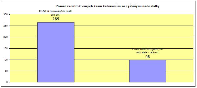 Z celkového počtu 265 kasin na území ČR se bez nálezu obešlo 167 kasin. Se zbylými 98 kasiny zahájil nebo zahájí státní dozor správní řízení pro porušení ustanovení loterního zákona, prováděcí vyhlášky nebo ustanovení uvedených v povolení k provozování kasina.