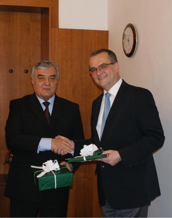 Ministr financí Miroslav Kalousek a předseda Státního daňového výboru Uzbekistánu pan Botir Rachmatovič Parpiev.