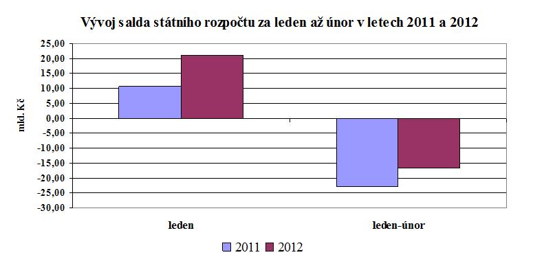 Hospodaření státního rozpočtu skončilo na konci února 2012 schodkem ve výši 16,6 mld. Kč, což je proti stejnému období roku 2011 výsledek lepší o 6,3 mld. Kč. V meziročním srovnání se pozitivně projevilo zejména meziročně vyšší inkaso daňových příjmů včetně pojistného na sociální zabezpečení (o 8,7 mld. Kč).