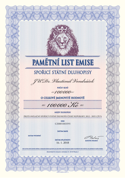Minimální výše jedné objednávky bude opět 1 000 kusů dluhopisů, přičemž jmenovitá hodnota jednoho kusu bude činit 1 Kč. Maximální počet kusů dluhopisů, které může jedna osoba celkem během upisovacího období objednat (pokud osoba podá více žádostí o úpis, tak se počet objednaných dluhopisů sčítá), bude v případě reinvestičního a variabilního dluhopisu 1 mil. Kč. Pro proti-inflační dluhopis zůstává tento limit stanoven ve výši 50 mil. Kč.