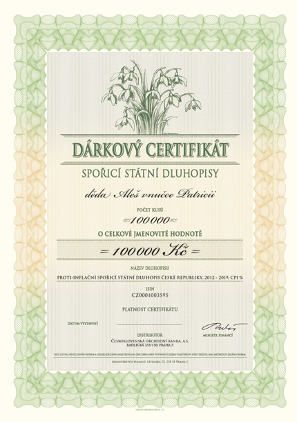 V rámci jarní série emisí bude možné zakoupit u smluvních distributorů všechny druhy doposud prezentovaných dárkových certifikátů a také pamětní list emise.