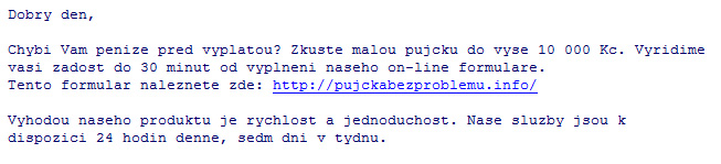 Žádáme proto všechny, kteří se stanou obětí těchto podvodných e-mailových zpráv, aby neotvírali odkazy a neodesílali žádné osobní či bezpečnostní údaje na adresy v nich uvedené. Dále prosíme všechny, kteří již tento typ nevyžádané e-mailové zprávy z domény mfcr.cz obdrželi a chtějí se aktivně podílet na odhalování zdrojů těchto zpráv a na omezení jejich dalšího šíření, aby tyto nevyžádané e-mailové zprávy zaslali na k tomuto účelu určenou e-mailovou adresu mf-spam@mfcr.cz.