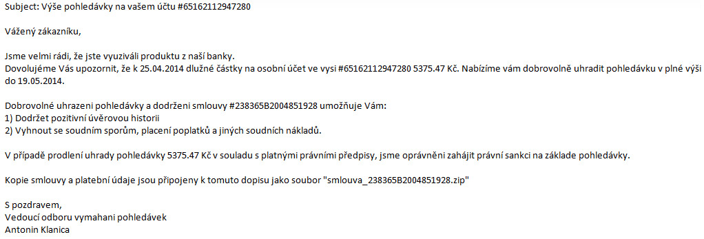 Příklady podvodných emailů naleznete ve fotogalerii.