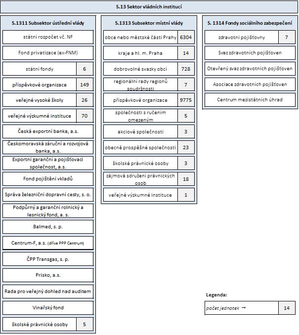 Do vládního sektoru byla nově, dle doporučení Eurostatu v rámci výkladu nové metodiky ESA 2010, zařazena také Českomoravská záruční a rozvojová banka, EGAP a Fond pojištění vkladů. Deficit roku 2014 byl na základě toho ovlivněn výplatou náhrad Fondem pojištění vkladů za zkrachovalé finanční instituce ve výši 14,7 mld. Kč. Meziročně tato transakce mimo přímou kontrolu vlády zhoršila saldo vládního sektoru přibližně o 0,3 % HDP.