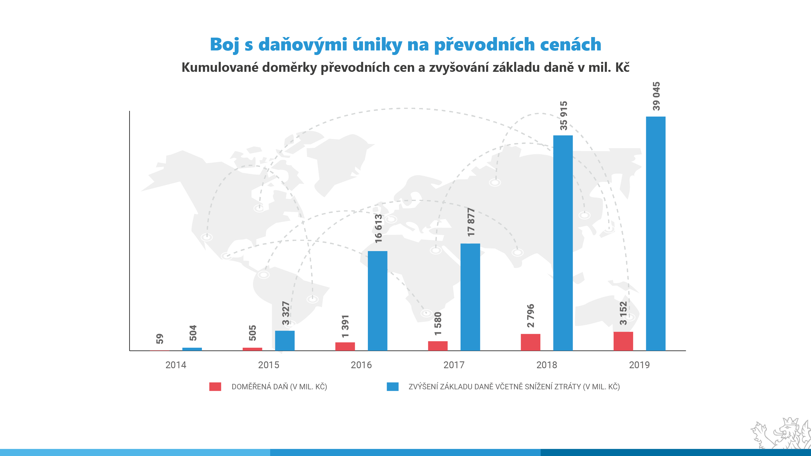 | Rok | Doměřená daň (v mil. Kč) | Zvýšení základu daně včetně snížení ztráty (v mil. Kč) |