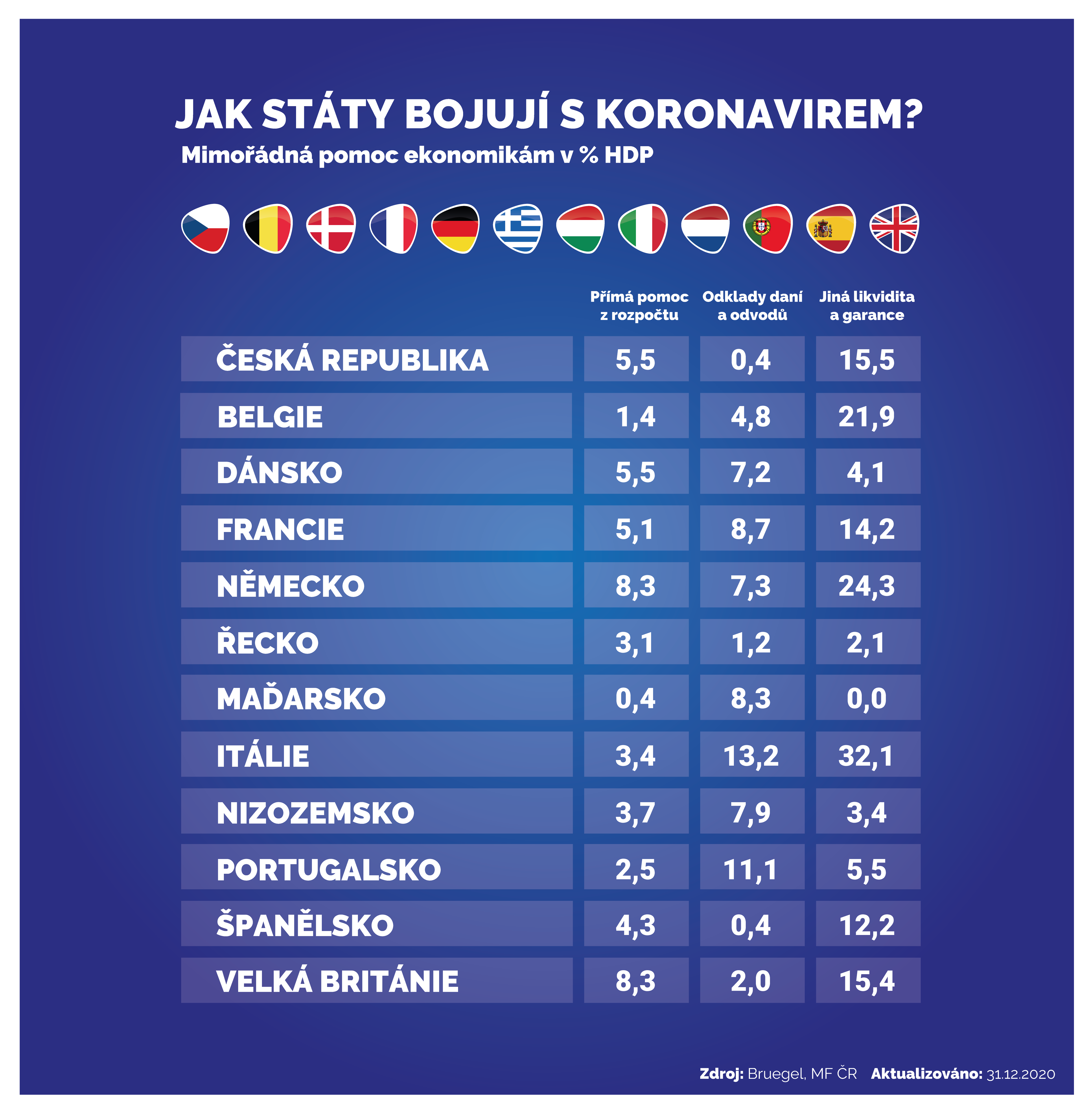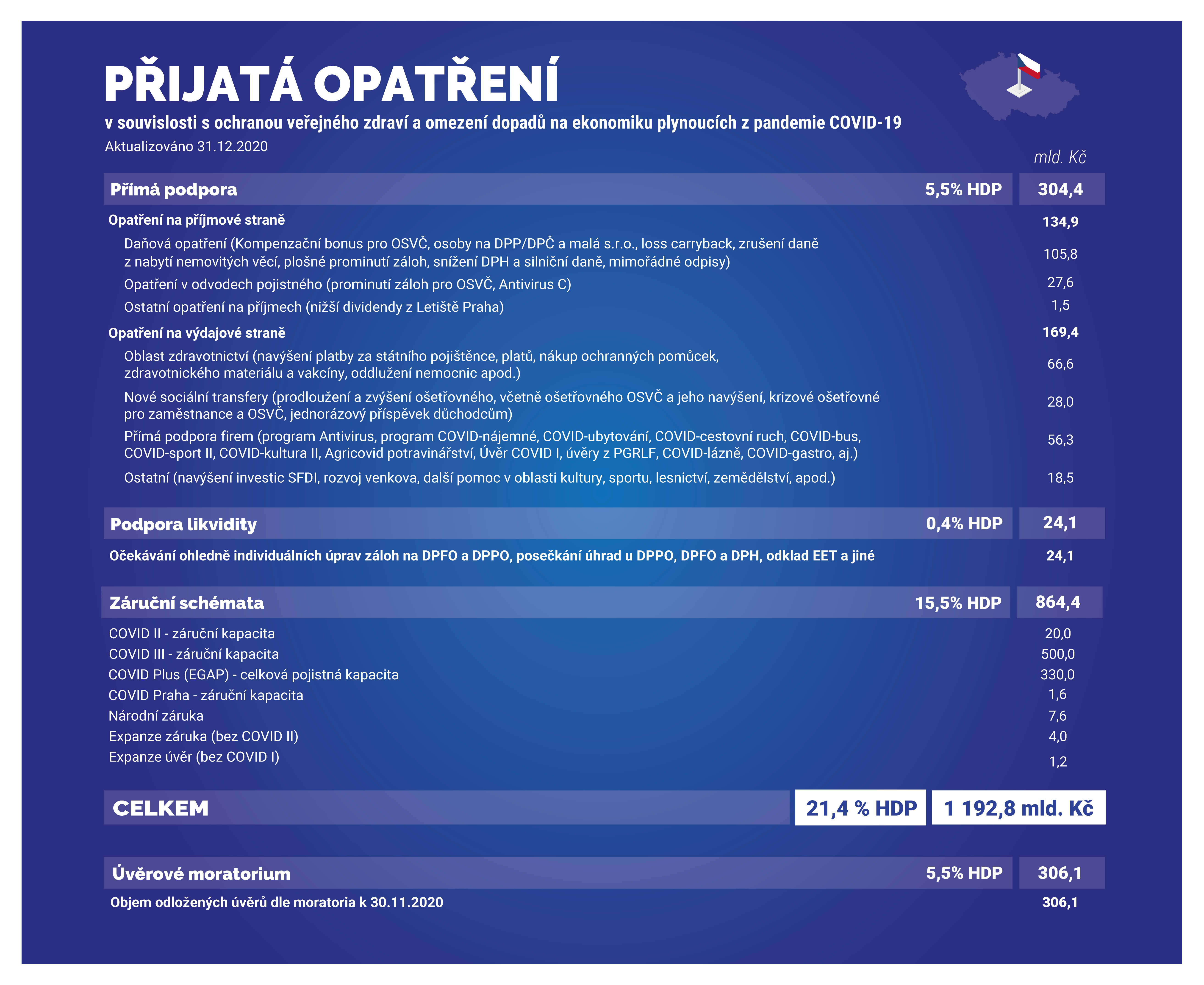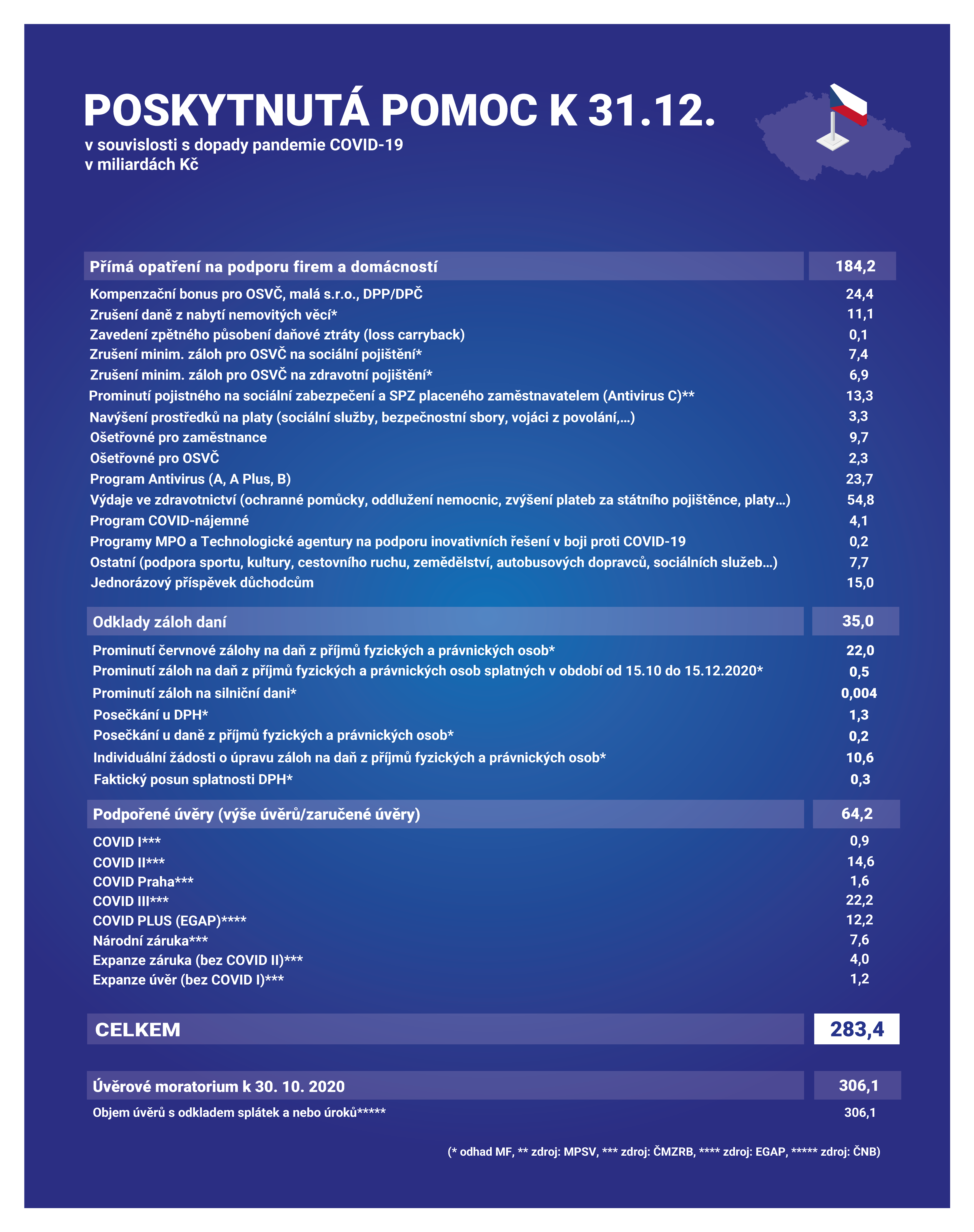 Podrobná data, včetně výše realizované pomoci a výdajů souvisejících s COVID-19, naleznete v přiložených tabulkách (.XLSX, 74 kB).