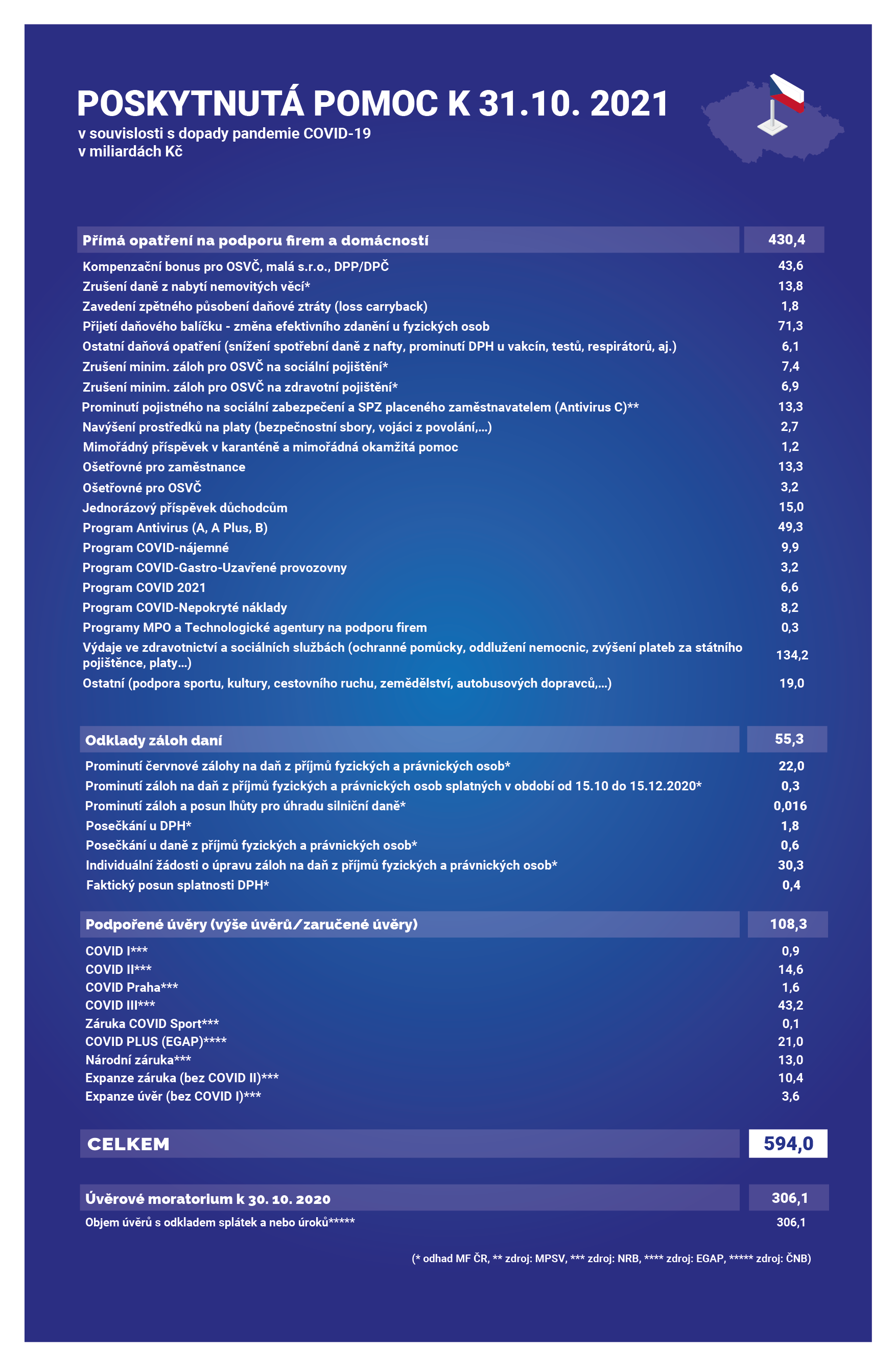 Podrobná data, včetně výše realizované pomoci a výdajů souvisejících s COVID-19, naleznete v přiložených tabulkách (.XLSX, 72 kB).