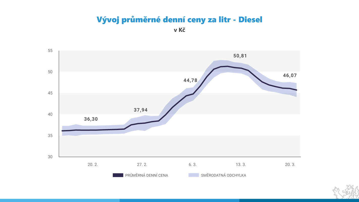 Provedená analýza MF prokázala dílčí cenové odchylky oběma směry, kdy v jednotlivých případech byly vidět i prodeje se zápornou marží. Vyšší volatilitu prodejních cen lze s ohledem na mechanismus cenotvorby považovat do jisté míry za pochopitelnou, protože většina čerpacích stanic po obdržení dodávky pohonných hmot zná cenu někdy až za 30 dnů a musí v současném nestabilním prostředí na cenové výkyvy operativně denně reagovat. MF přitom aktuálně nepředpokládá, že by se průměrné marže v měsíci březnu nakonec výrazněji odchýlily od února, nicméně v monitoringu cen budeme nadále pokračovat a vyhodnotíme data za celý březen. Prozatím podobně jako většina zemí EU nepřistoupí MF k cenové regulaci formou zafixování maximální výše marží.