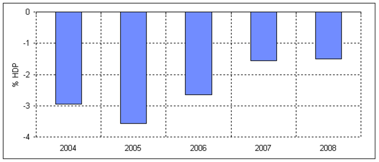 V roce 2008 se předpokládá saldo vládního sektoru ve výši -57,9 mld. Kč, tj. -1,5 % HDP. Bude tak pokračovat trend úspěšně zahájené fiskální konsolidace a snižování podílu deficitu vládního sektoru na hrubém domácím produktu.