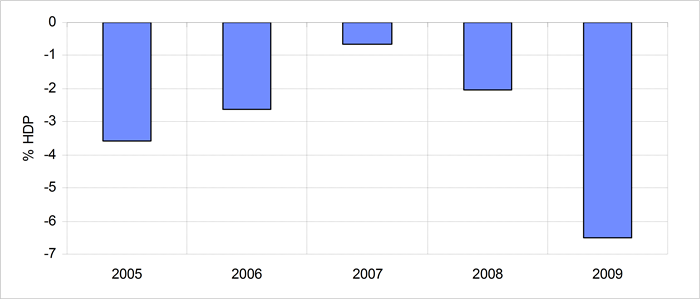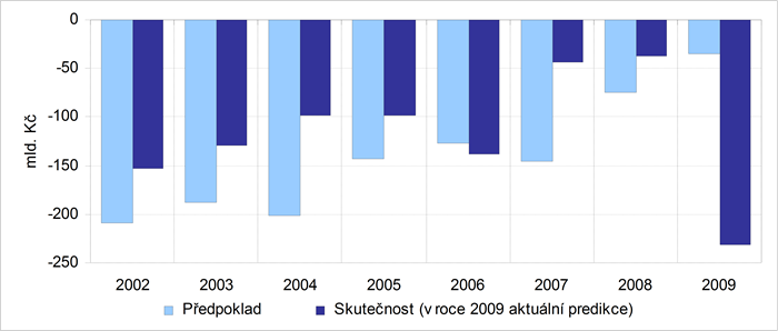 V roce 2009 se očekává podstatné prohloubení deficitu vládního sektoru až na hodnotu téměř 240 mld. Kč, tj. 6,6 % HDP. Po poměrně dlouhé době tak dojde opět k překročení hranice 3 %, která je relevantní pro plnění maastrichtských konvergenčních kritérií.