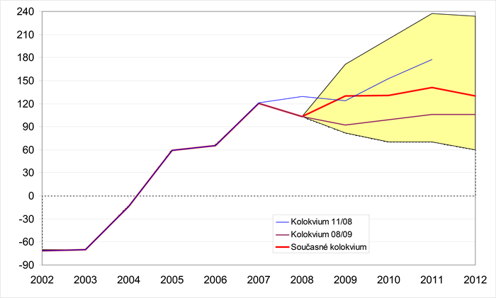 Převážně se očekává stabilní výrazně kladné saldo, odrazem nejistot široké variační rozpětí