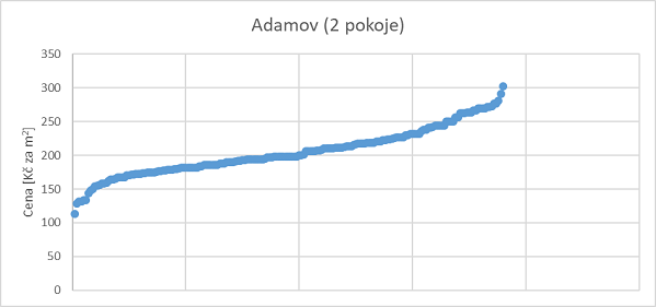 - 2. velikostní kategorie: od 40 m2 do 70 m2 – odpovídá zhruba 2 pokojům v bytě – tedy do tvorby mapy vstupují většinově byty 2+kk, 2+1,